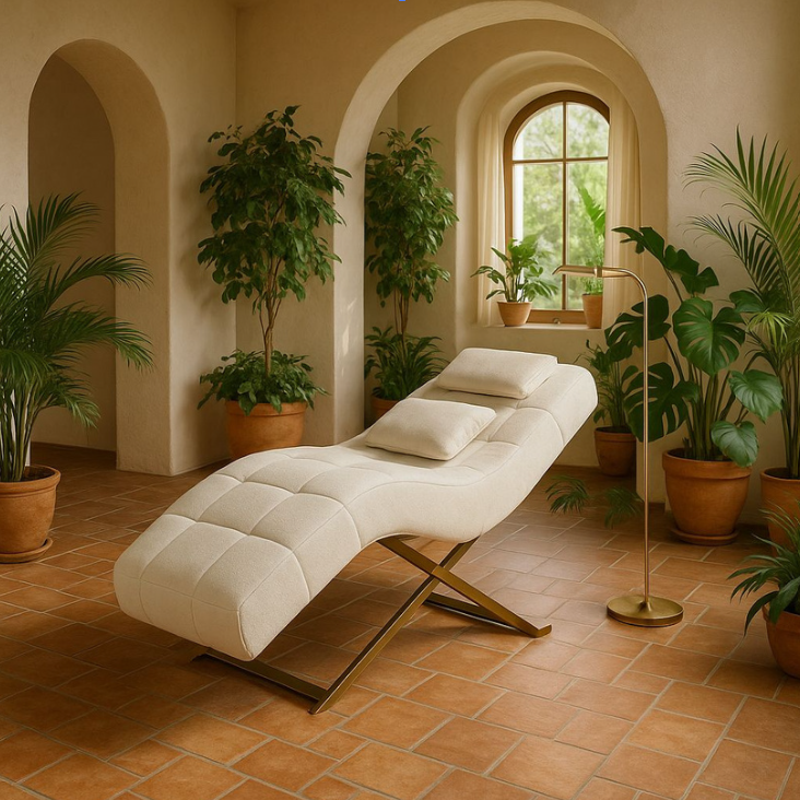 THE PRIME AURA Profesjonalne łóżko zabiegowe o ergonomicznej formie S-Shape. Luksusowy design, welur premium i wyjątkowy komfort dla salonów kosmetycznych, SPA i gabinetów masażu.